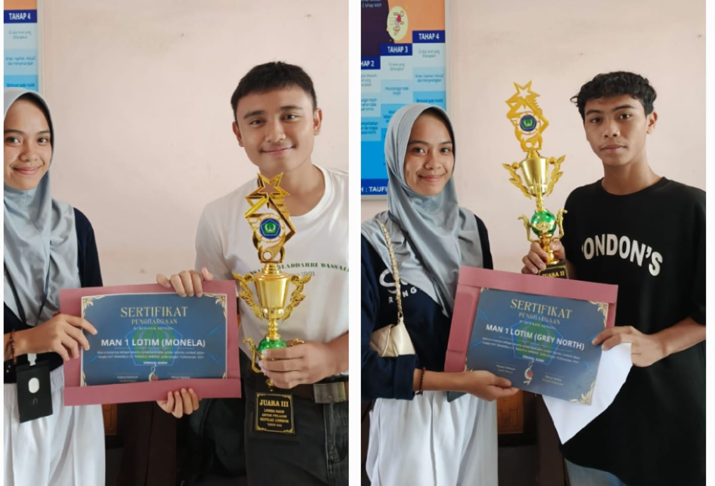 Pada lomba band yang diikuti puluhan band pelajar tingkat SLTA ini band Grey North yang digawangi oleh Muh Zauda Jaya (XII Agama), Taufik Winata (XII IPS.4), Siti Indana Magfirah (XJ), Lalu Muhammad Raghib Yustiandi (XA), Muh Ilham Bissholihin (XII IPA 5) sukses meraih juara 2 dan band monelia yang personalianya terdiri dari ; M. Qesyar Arqan Mubaroq XH, M.Yavi Ardha Witaraga XI IPS 2, M Munzir Wahyu Ramadhan XI IPS 3, Dicky Dinul Haq XI IPS 4, Ziodinu Assya’bani XI Agama berhasil meraih juara 3 dan atas torehan kedua tim band binaan Maulana Hidayat ini berhasil membswa pulang piala, sertifikat juara dan dana pembinaan.