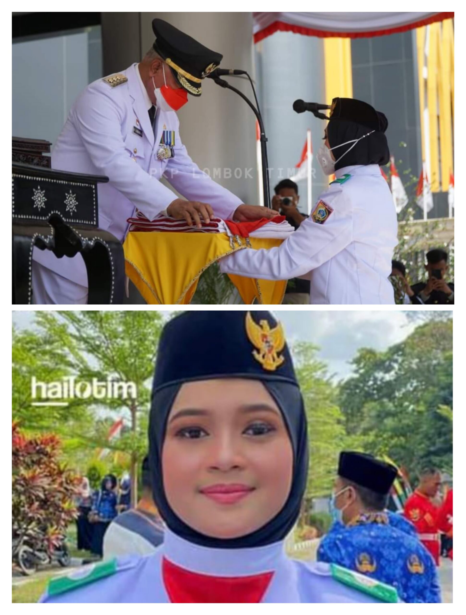 Zaskia: Siswi MAN 1 Lotim Pembawa Baki Paskib Apel Bendera HUT RI Ke-77 Kab. Lotim 2022